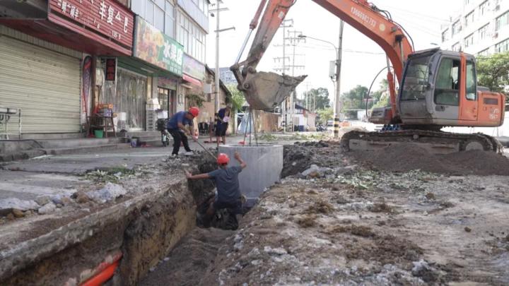 项目施工现场,工人们正熟练操作机械进行路面开挖作业。据介绍,该项目于8月20日至9月30日期间对金陵路批发市场段进行全封闭施工。施工期间,摩托车和行人可正常通行,过往车辆则需往新城西路至三官堂路或新城西路至大洲方向绕行。