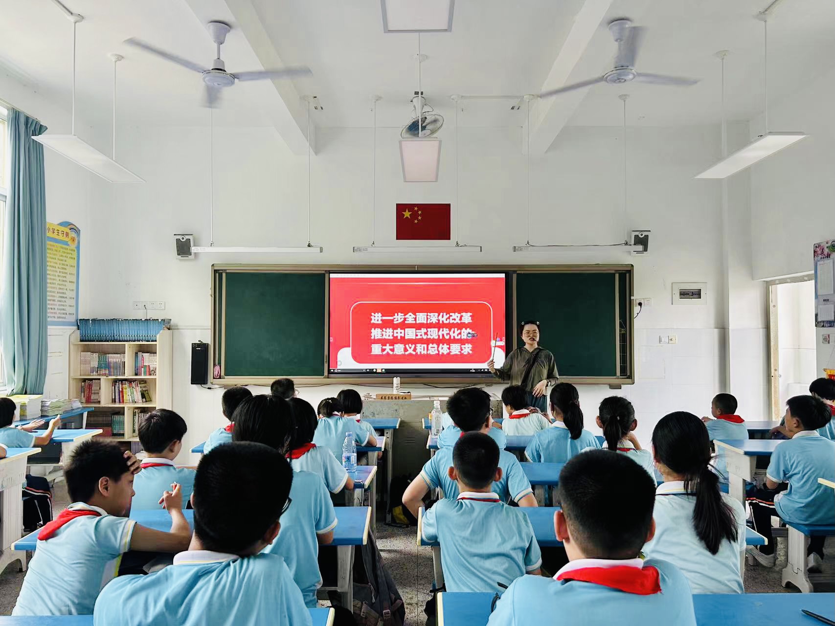 各班级组织开展了内容丰富、形式多样的宣讲活动。老师们运用生动的案例和通俗易懂的语言,带着孩子们一同领略“可爱的中国”,感受中国式现代化建设的磅礴力量,让孩子们深刻认识到党的二十届三中全会的重要意义。