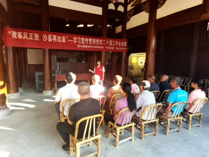 为深入学习贯彻党的二十届三中全会精神,让党的创新理论在基层落地生根,近日,富口镇新时代文明实践所“引领风骚”理论宣讲小分队在全镇范围内广泛开展“改革风正劲 沙县再出发”微宣讲活动。