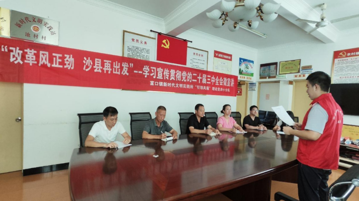 在池村村部,村“两委”干部一同学习党的二十届三中全会和省委十一届六次全会、市委十届七次全会精神,大家表示将把全会精神转化为推动基层工作的强大动力,因地制宜做好“土特产”文章,持续壮大乡村富民产业。