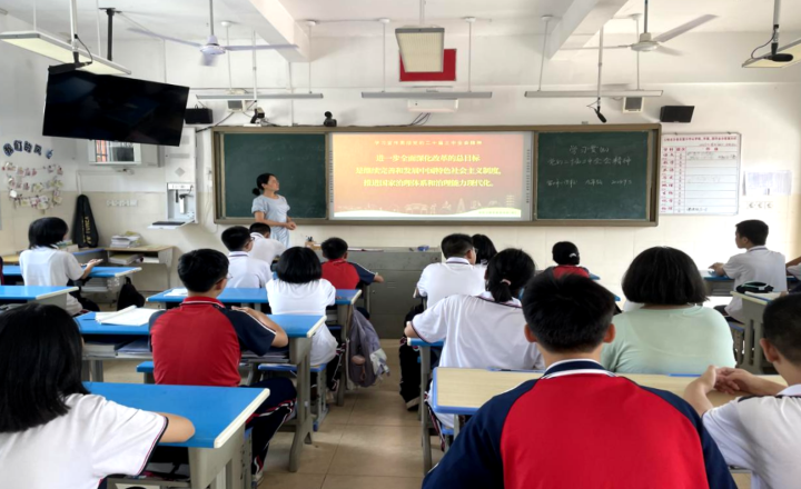 “开学第一课”上,各班积极开展形式多样的宣讲活动,深入学习贯彻党的二十届三中全会精神,让在校师生共同感受中国式现代化的磅礴伟力。同学们纷纷表示,新学期将努力学习、积极锻炼,做一名心怀祖国、心怀党的新时代追梦人。
