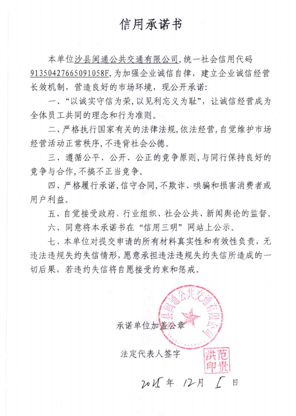 - 01-21 [01-21] 2026-01-21 沙县闽通公共交通有限公司承诺