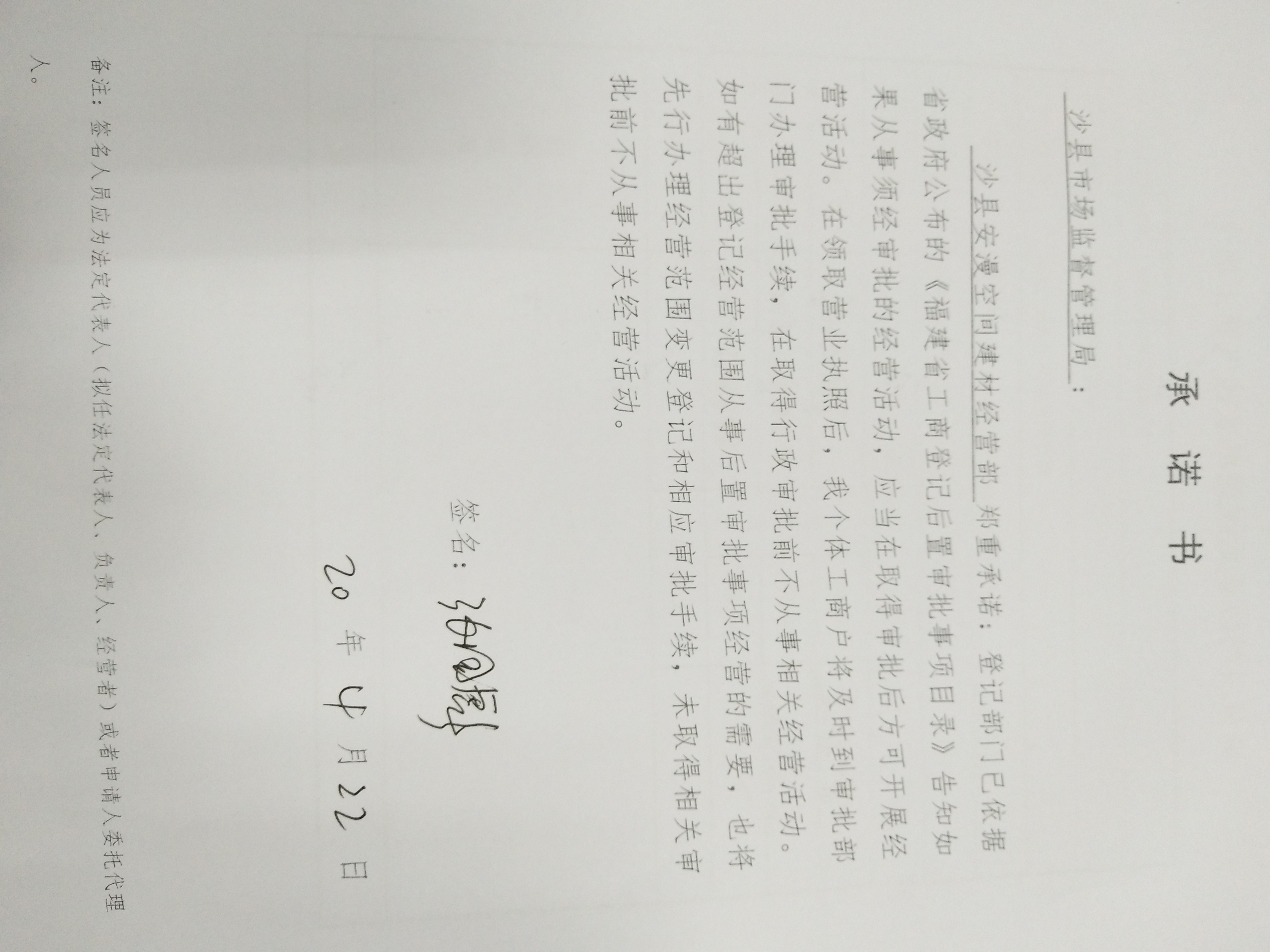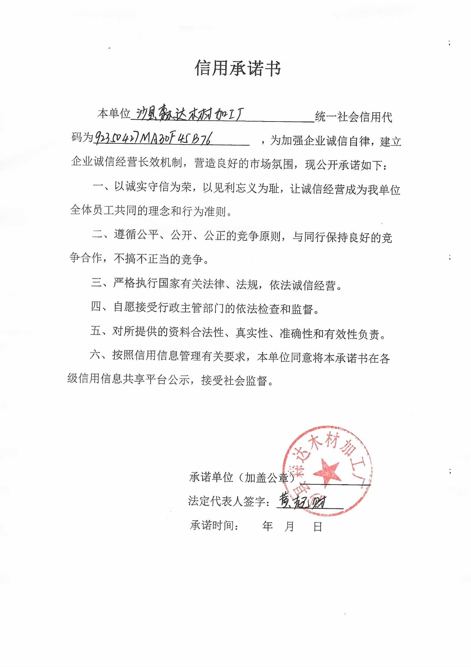 - 2020-09-21 沙县森达木材加工厂承诺