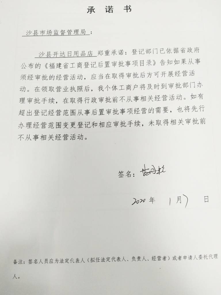 - 2020-03-10 沙县开达日用品店承诺