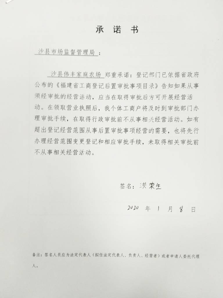 - 2020-03-17 沙县伟丰家庭农场承诺