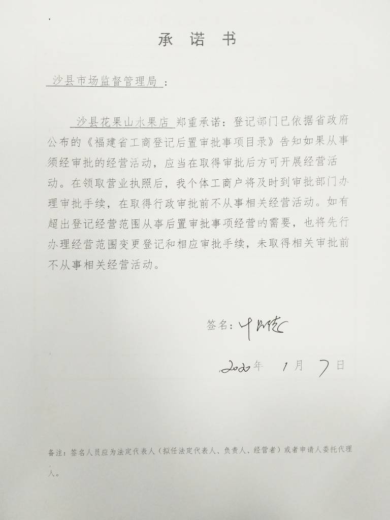 - 2020-01-22 沙县花果山水果店承诺
