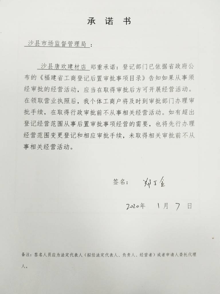 - 2020-02-13 沙县唐欢建材店承诺