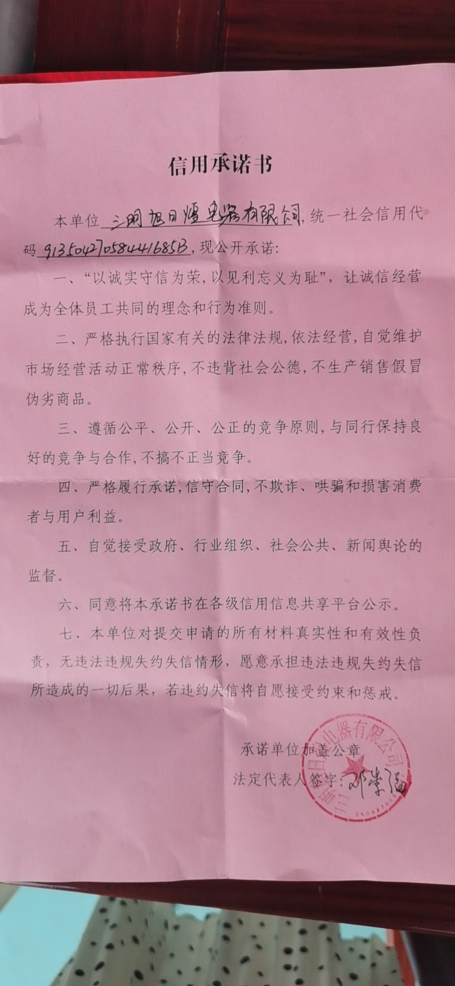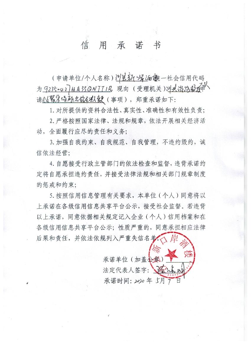 - 2020-05-13 沙县新口岸酒楼信用承诺书