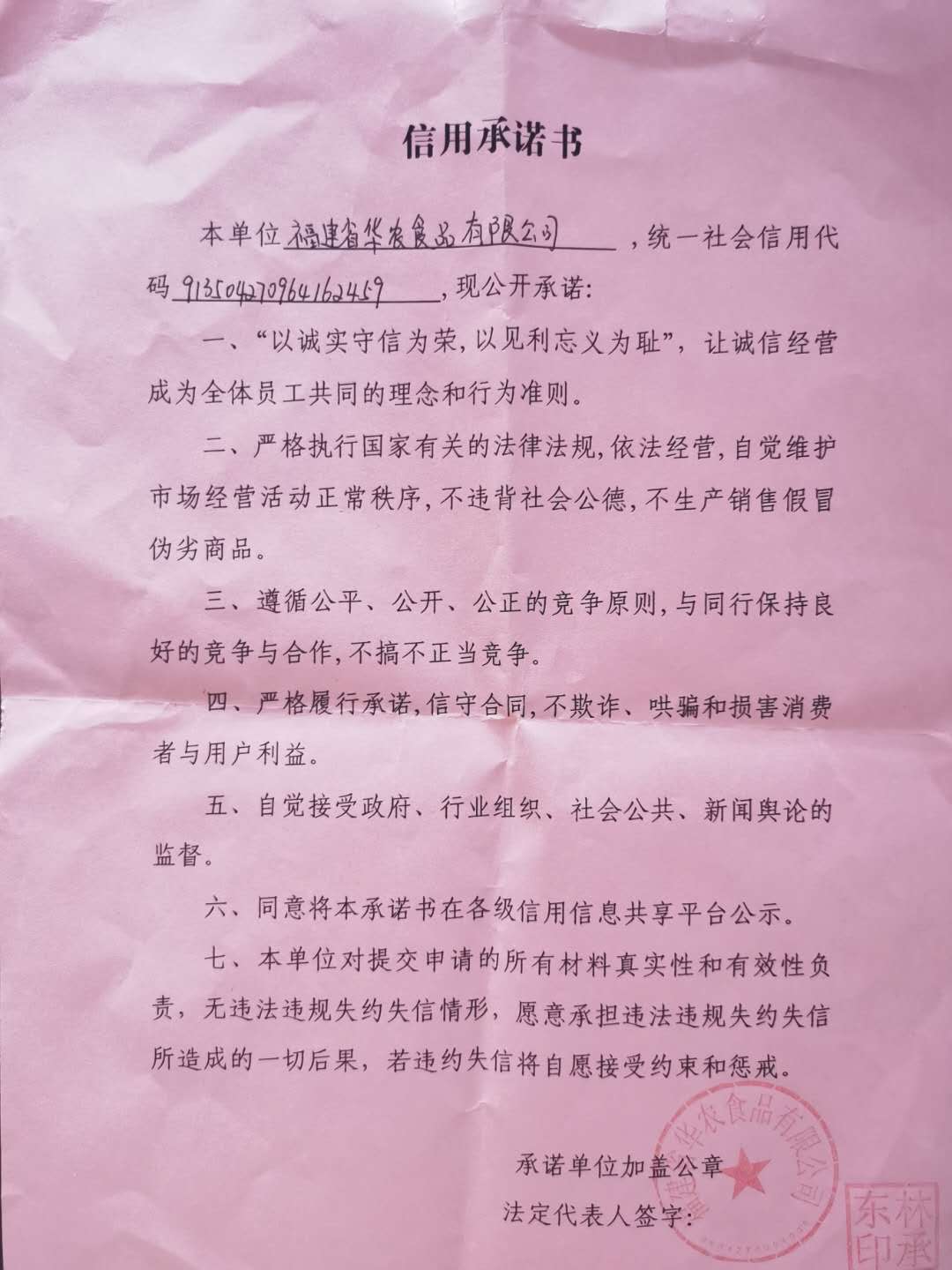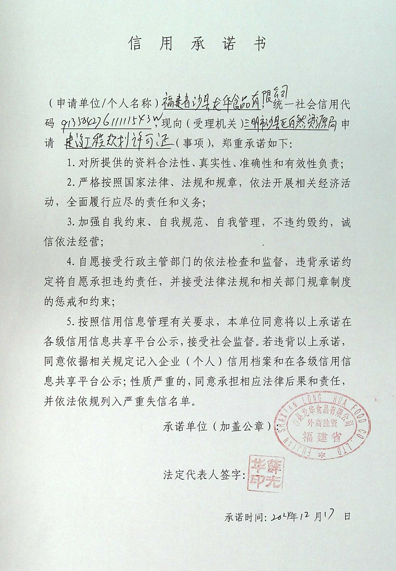 - 2025-02-26 福建省沙县龙华食品有限公司承诺