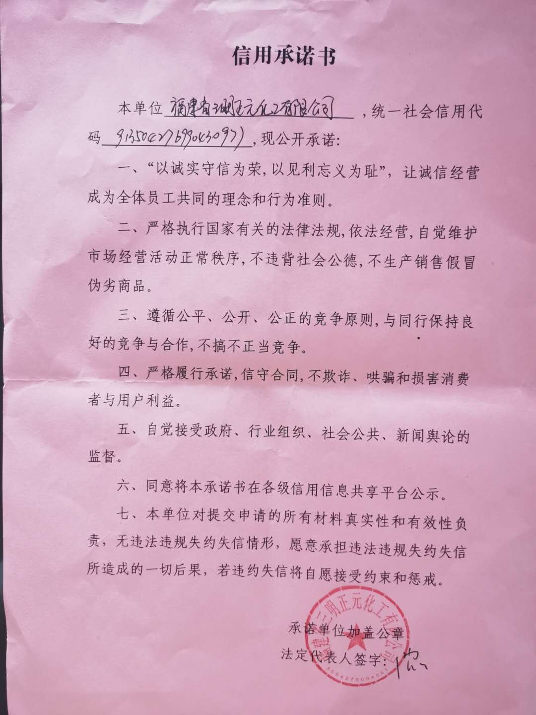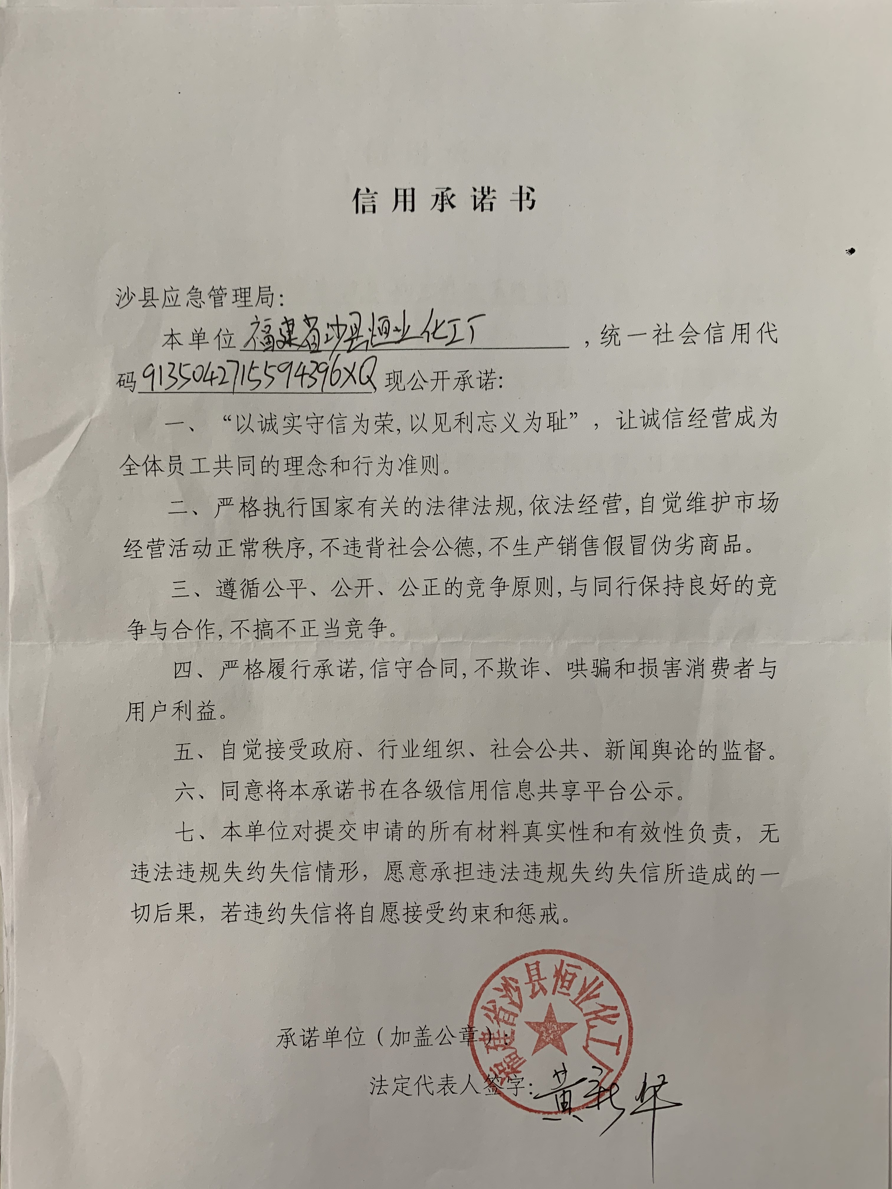 - 2020-08-18 沙县恒业化工厂承诺
