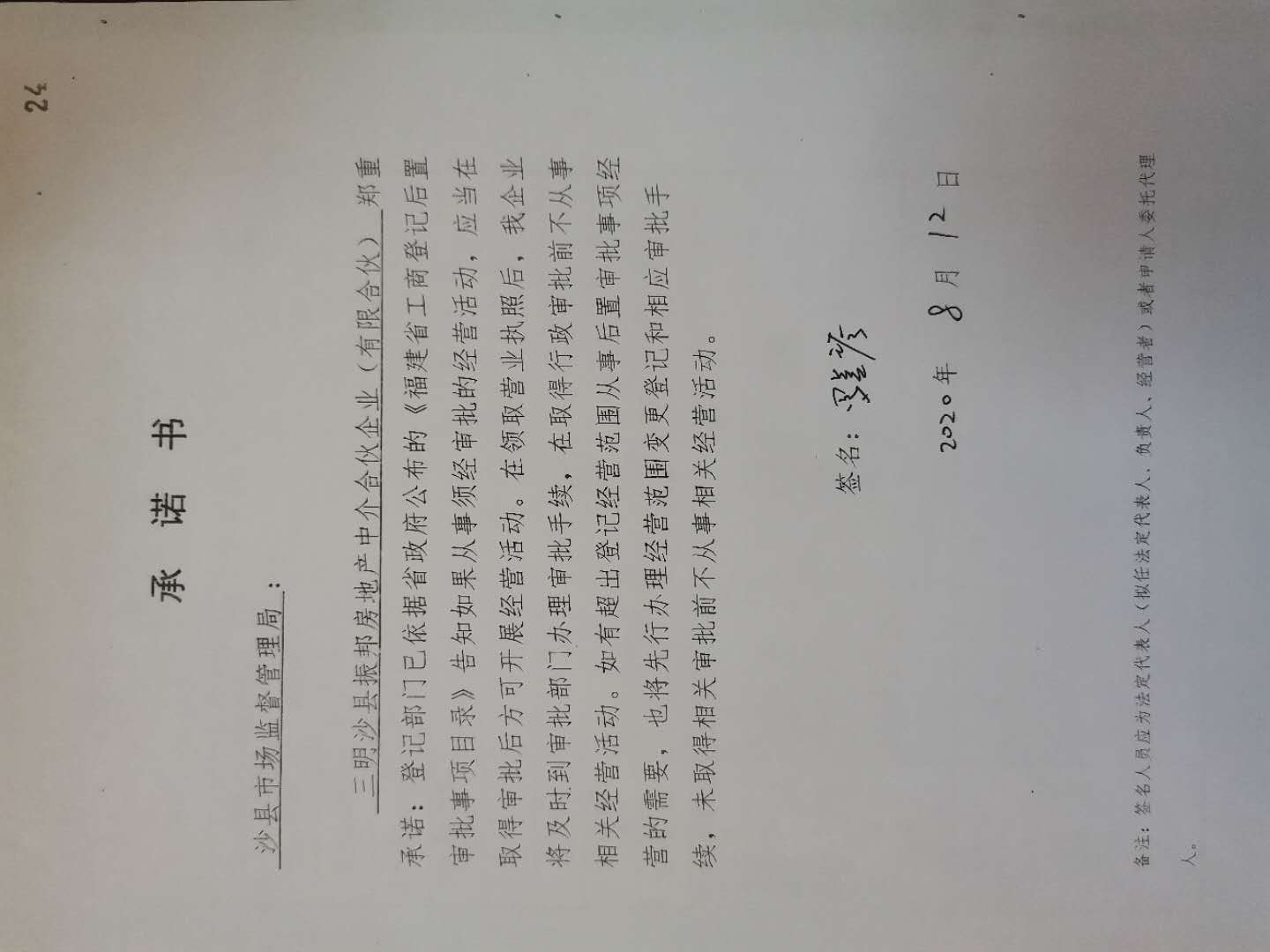- 2020-08-19 沙县振邦房地产中介合伙企业(有限合伙)承诺