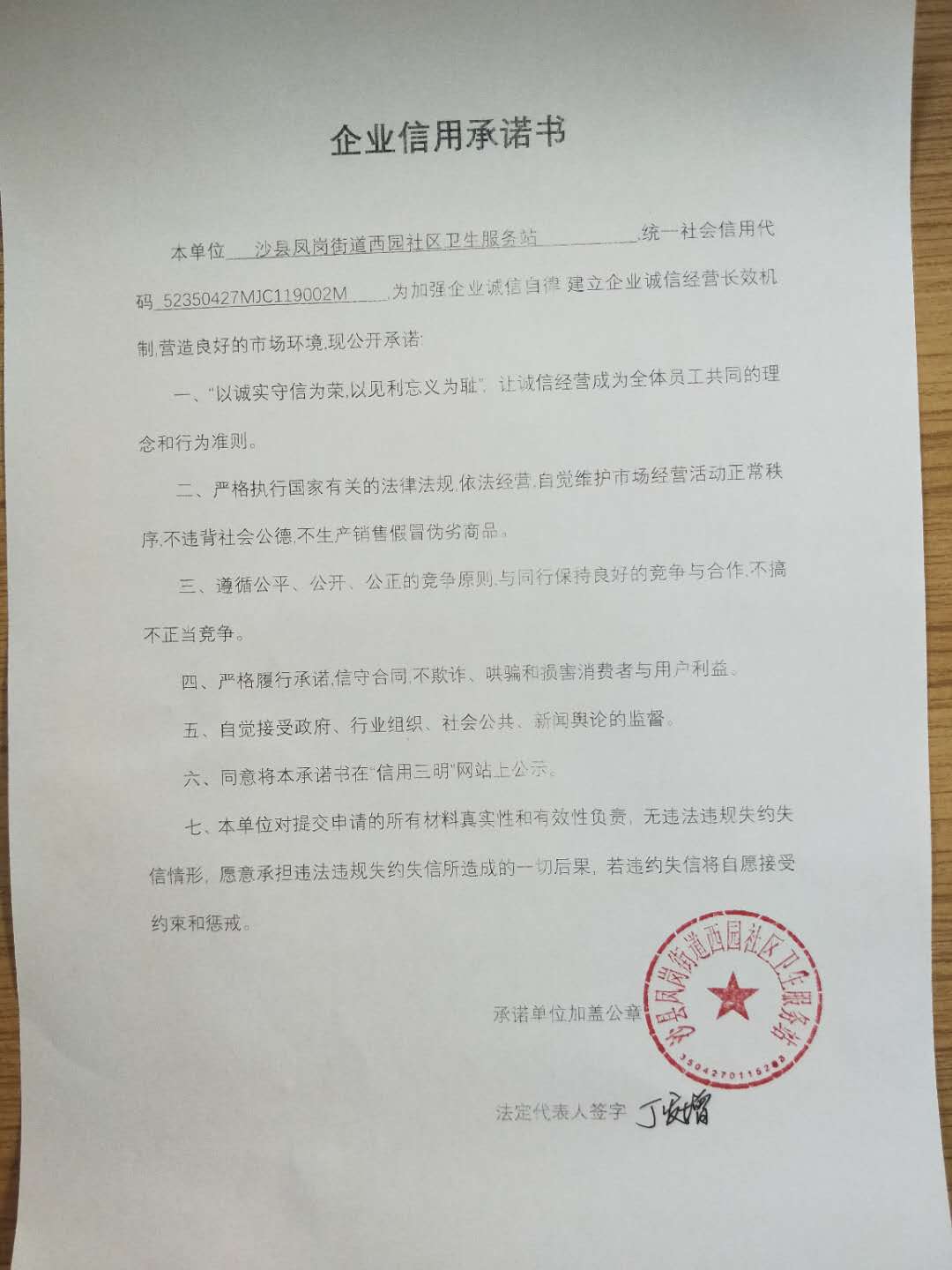 - 2020-08-31 西园社区卫生服务站信用承诺