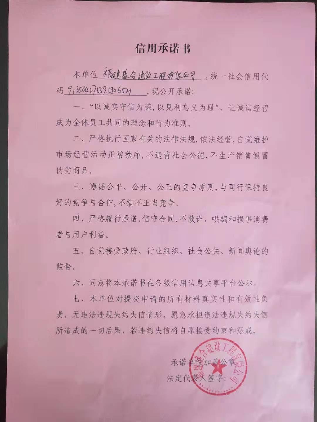 - 2024-08-20 福建屹轩建设工程有限公司承诺