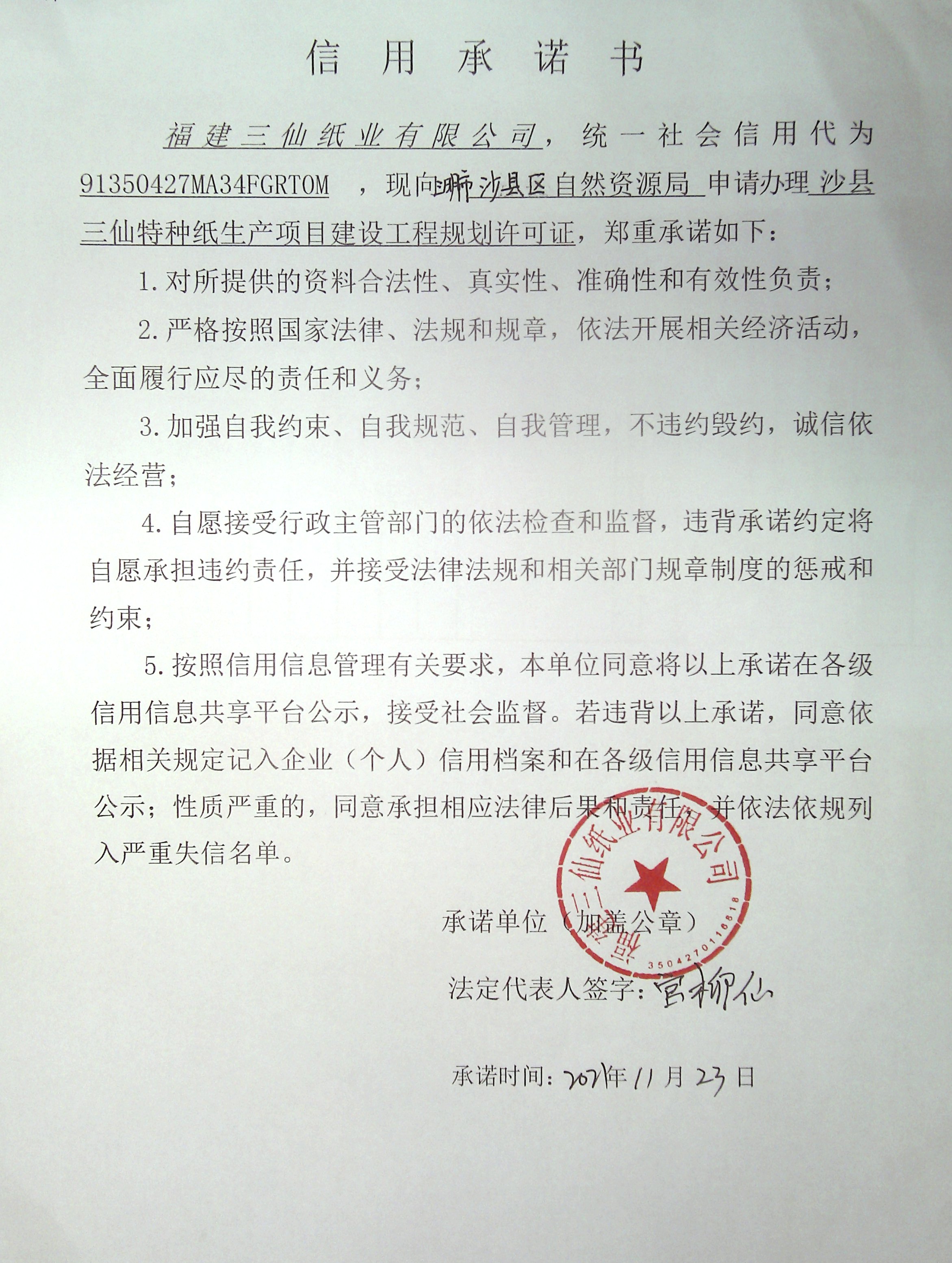 - 2022-02-16 福建三仙纸业有限公司承诺