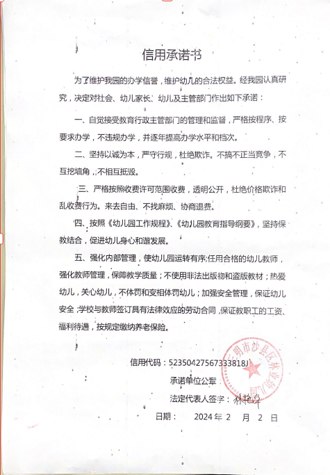 - 2024-03-29 三明市沙县区林业幼儿园承诺