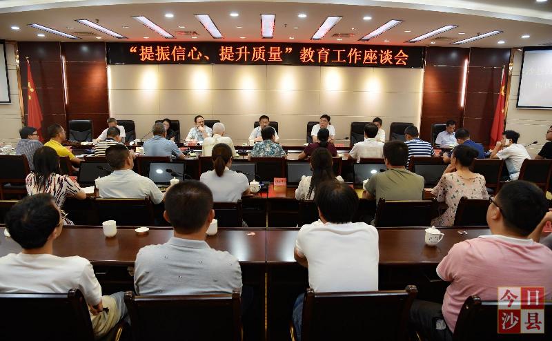 8月1日下午,我县召开“提振信心、提升质量”教育工作座谈会,动员全县上下坚定信心、乘势而上,合力推进沙县教育事业再上新台阶。县委书记杨兴忠,县领导乐生龙、龚祖清、郭贤辉、吴水胜,及各中小学校长、优秀教师代表、高考优秀学生代表等参加会议。