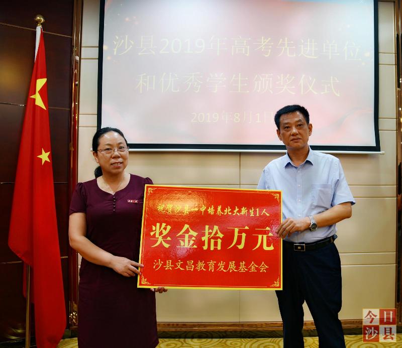 会上,县文昌教育发展基金会、关工委、企业家黄绍健个人对2019年高考取得优异成绩的部分学校、教师和学生进行了奖励。(记者:黄圣泽 图:许琰)