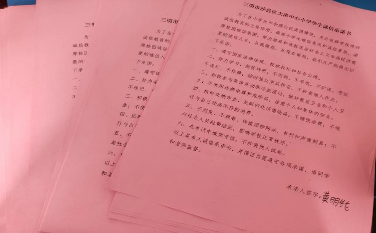 2022学年沙县区大洛中心小学诚实守信主题系列活动