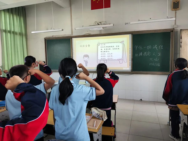 在班会活动中,老师们通过讲解诚信的重要性、分析诚信与个人发展的关系、分享诚信故事等方式,让学生们充分认识到诚信的重要性,并引导学生们反思自己在日常生活中是否存在不诚实的行为,鼓励他们勇于承认错误、积极改正。除此之外,老师们还组织了诚信故事分享环节,让学生们通过分享自己的经历或听到的诚信故事,进一步加深对诚信的理解和认识。学生们还进行了诚信宣誓,承诺在日常生活中做到诚实守信。