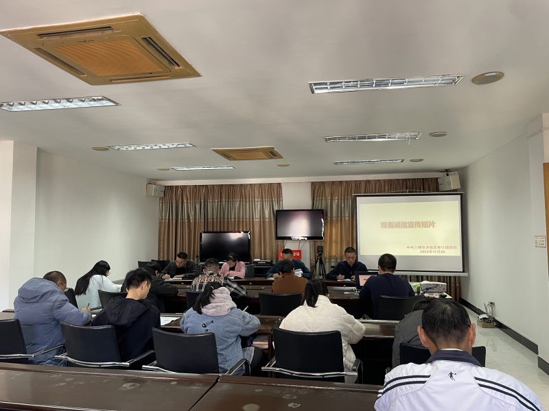 为加强诚信体系建设,宣传诚信理念、弘扬诚信文化,充分发挥审计干部职工在社会诚信和信用体系建设中的表率作用,2023年11月20日,三明市沙县区审计局组织全体干部职工观看诚信宣传短片。