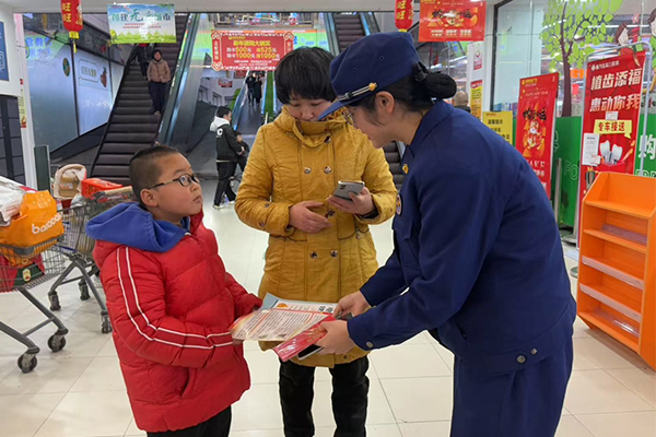 活动中,宣传人员走进商场,通过发放消防安全宣传单及诚信宣传材料等方式,详细地向群众讲解火灾的危害性和预防火灾的重要性。针对春节期间广大群众燃放烟花爆竹、使用香烛等实际情况,宣传员用通俗易懂的方式使其了解火灾的预防方法、初起火灾的扑救方法以及火场逃生自救方法,并提醒广大群众一定要在出门前做到“三清三关”,确保外出期间家中消防安全稳定。