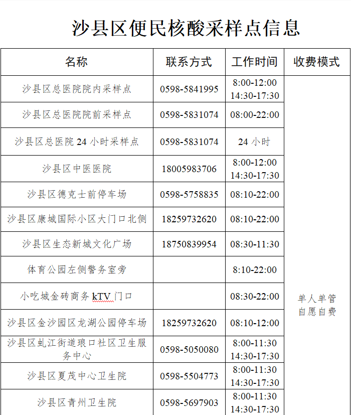 沙县区关于调整核酸检测有关事项的通告(〔2022〕第38号)