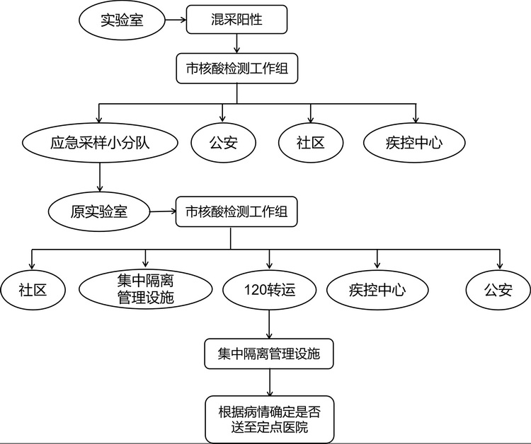 4.阳性结果处置专班。主要负责统筹管理涉疫城市所有核酸检测阳性结果的处置工作(包括单采阳性和混采阳性),迅速协调完成信息流转、混采阳性的单采复核、单采阳性人员的转运工作。专班由120转运、公安、疾控和应急采样小分队组成。