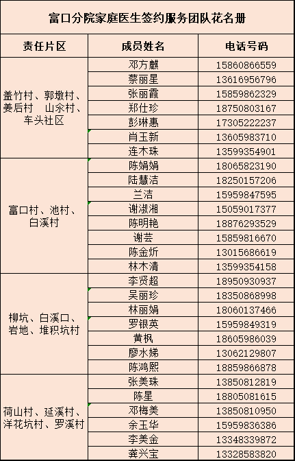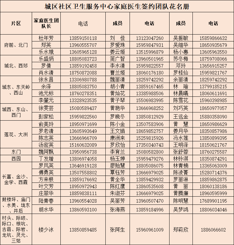 为进一步帮助和指导广大市民做好自我健康管理,沙县区总医院向社会公布了全区12个乡(镇、街道)家庭医生签约服务团队信息及服务范围。如您有相关健康问题,可拨打家庭医生签约团队联系电话进行咨询,家庭医生自助查询链接:http://47.122.10.33/1/22.htm#/