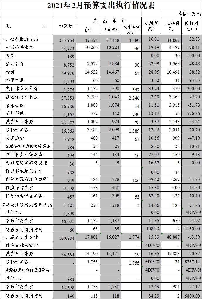 2021年2月预算支出执行情况