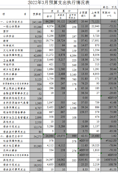 2022年1-3月预算支出执行情况