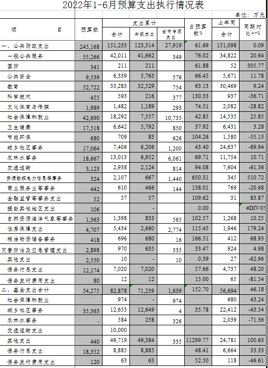 2022年1-6月预算支出执行情况