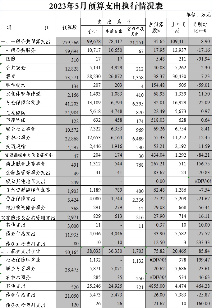 2023年5月预算支出执行情况