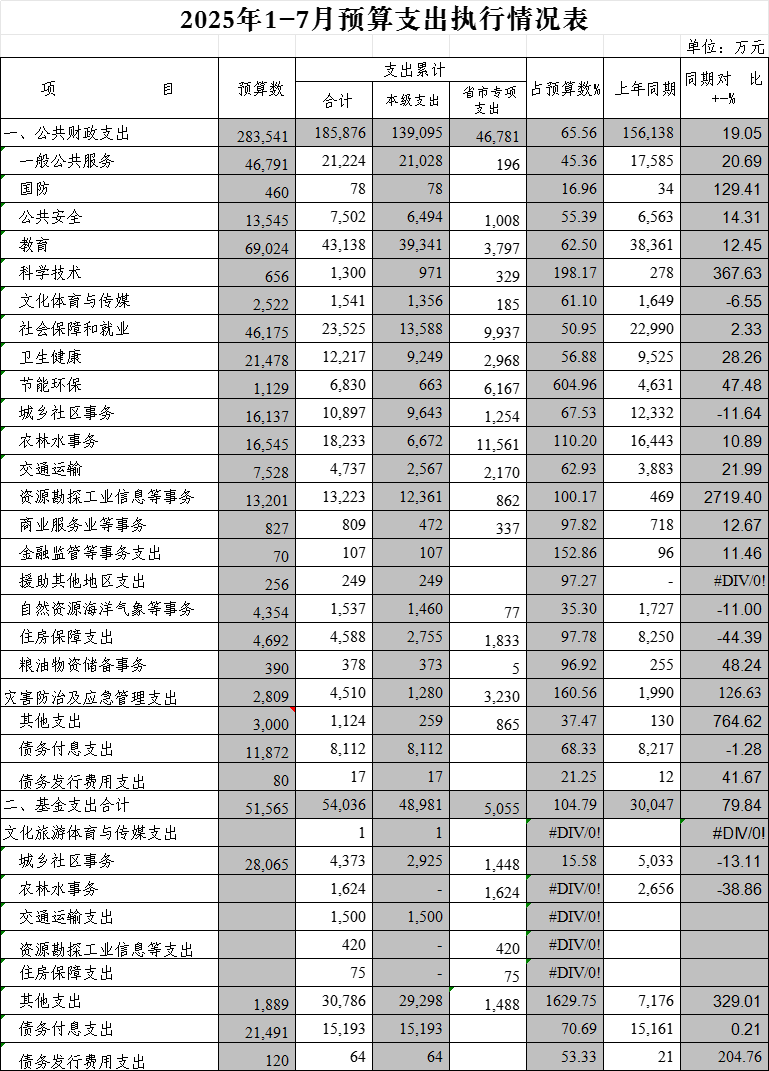 2025年1-7月预算支出执行情况