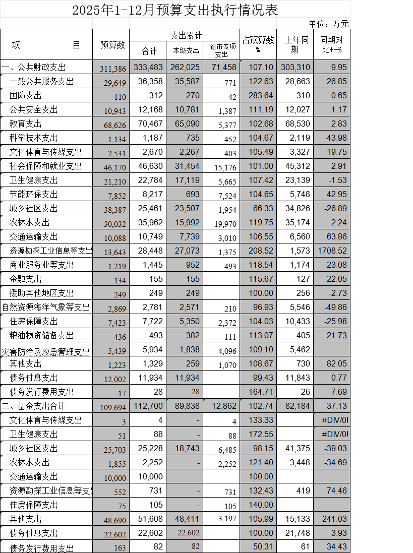 2025年1-12月预算支出执行情况