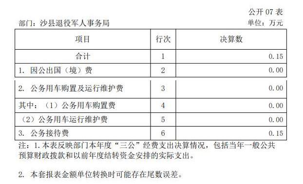 2020年沙县退役军人事务局“三公”经费决算支出情况