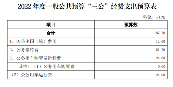 2022年度沙县区人民政府办公室“三公”经费支出预算情况