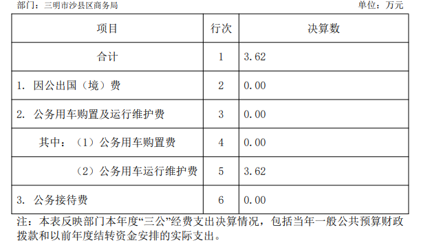2022年沙县区商务局部门“三公”经费支出决算情况