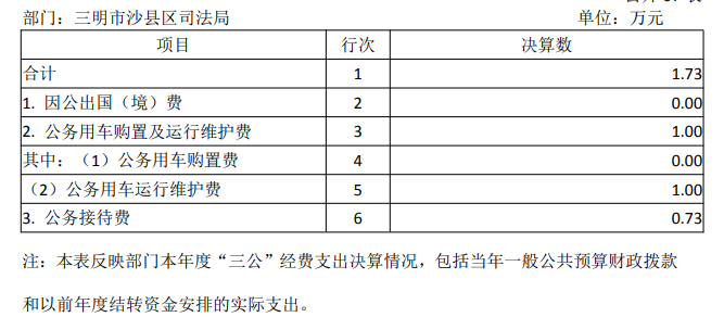 2022年沙县区司法局部门“三公”经费支出决算情况