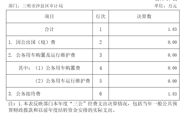 2022年沙县区审计局部门“三公”经费支出决算情况
