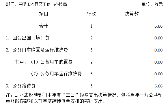 2022年沙县区工信与科技局部门“三公”经费支出决算情况