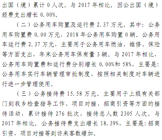 2018年沙县湖源乡人民政府“三公”经费支出决算情况