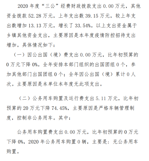 2020年度夏茂镇人民政府“三公”经费决算情况