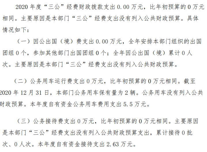 2020年度凤岗街道办事处“三公”经费决算情况