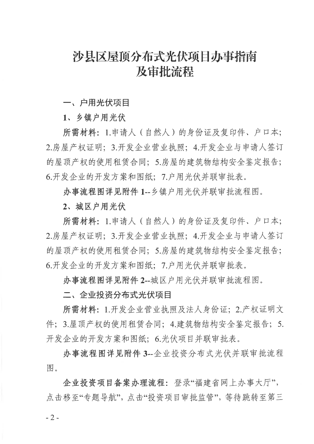 沙县区屋顶分布式光伏项目办事指南及审批流程
