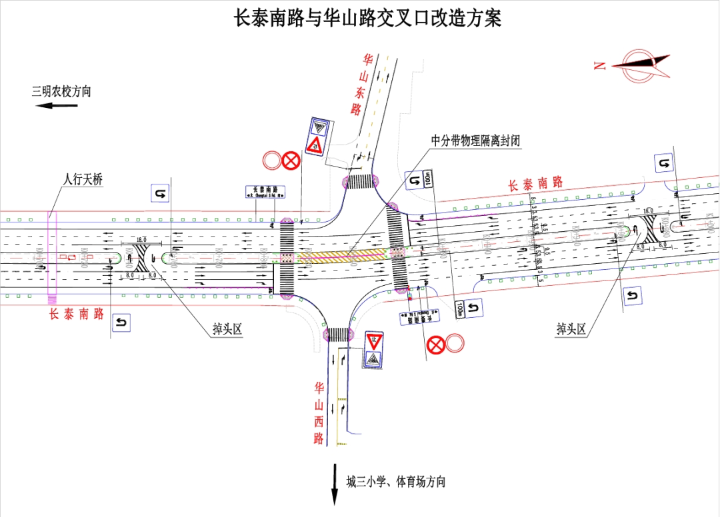 沙县区城区主次干道管网改造建设项目(长泰南路提升改造项目),改造起点距金沙东路交叉口约100m,改造终点距新城东路交叉口约50m,改造长度约1040m,改造宽度40-42m。改造内容为路面白改黑改造、雨污水管网改造、人行道铺装改造等。本次改造路面及中分带基本保持现状,因长泰南路与华山路交叉路口交通拥挤,拟对中分带进行物理封闭,项目计划2025年下半年实施,现将该交叉路口改造方案进行公示,公示期限为10日,欢迎广大居民提出建议和意见。