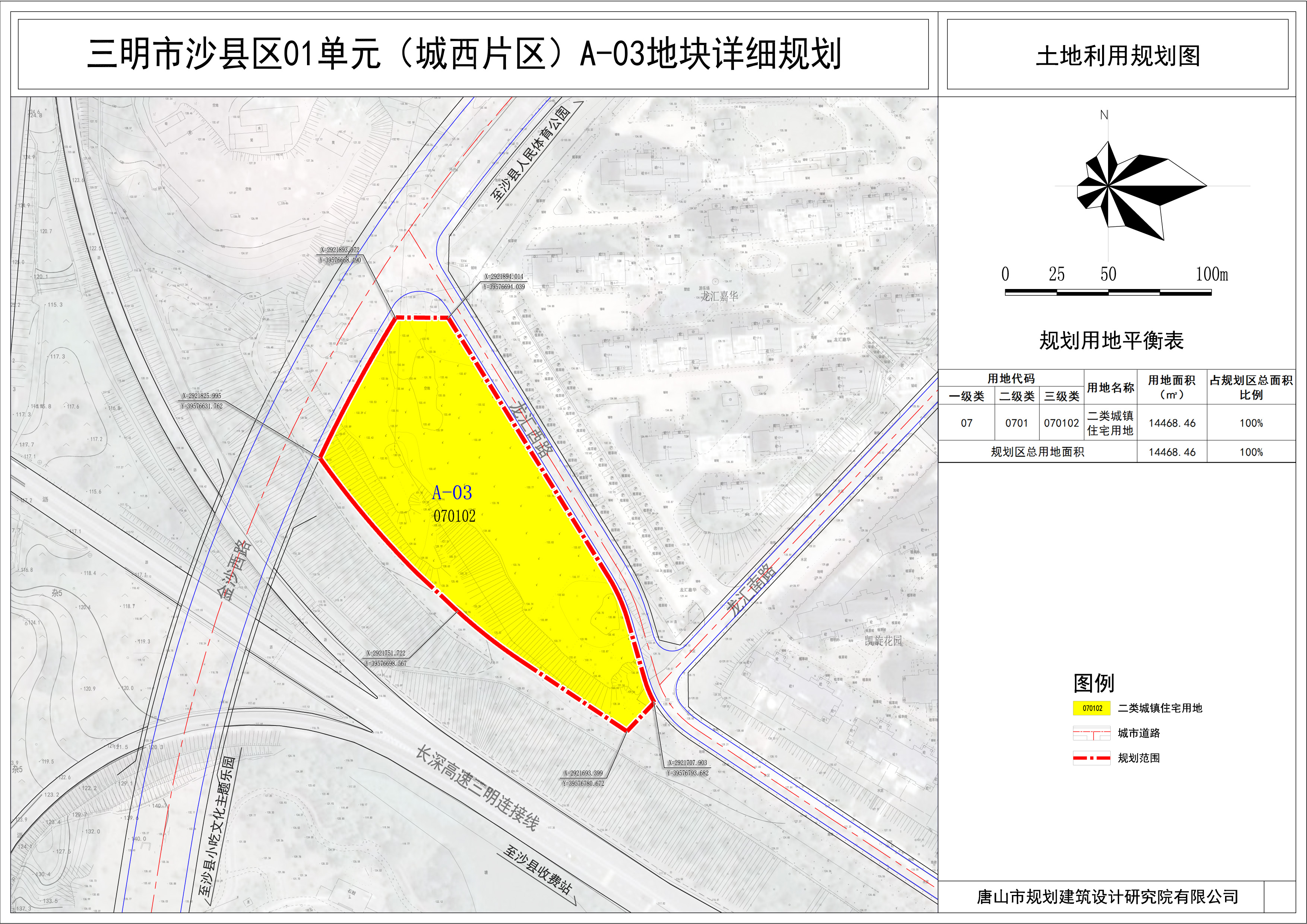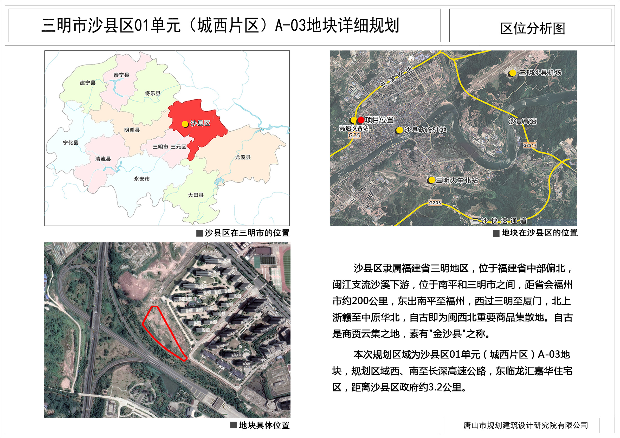 关于《三明市沙县区01单元(城西片区)A-03地块详细规划(草案)》的公示
