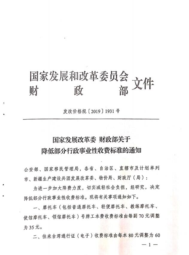 转发《国家发改委 财政部关于降低部分行政事业性收费标准的通知》
