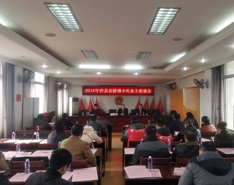 2月10日上午,高桥镇召开一年一度的沙县小吃业主座谈会。县小吃发展服务中心副主任张鑫、镇长陈桂光、镇分管领导、小吃办负责人及小吃业主代表等50余人参加座谈会。