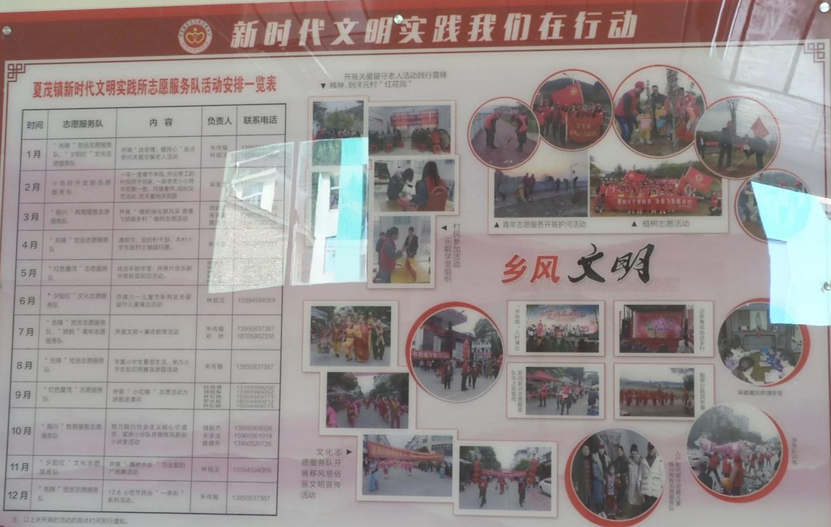 为了让文明实践理念进一步深入人心,夏茂镇建成新时代文明实践所1个,实践站28个,编制“先锋”党员、“夕阳红”、小吃驻外、“振兴”教育服务、“红色夏茂”文化、“扬帆”青年等6支专业志愿服务队及28个村(居)志愿服务队,共826人。截至目前,已组织文艺演出、美化环境、慰问老人、关爱儿童,以及护河、植树等活动59场次,惠及人数达4900余人。