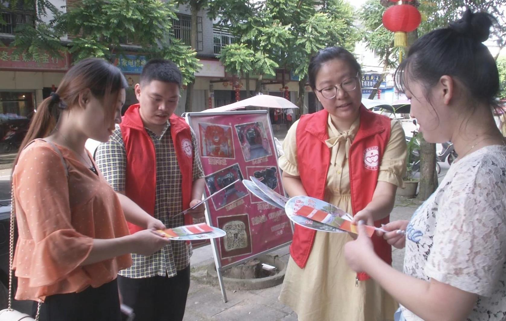 这天,夏茂镇新时代文明实践所“扬帆”青年志愿服务队的张兴元和其他成员们正利用村民晚饭后的休闲时间,向村民们发放移风易俗的宣传材料。